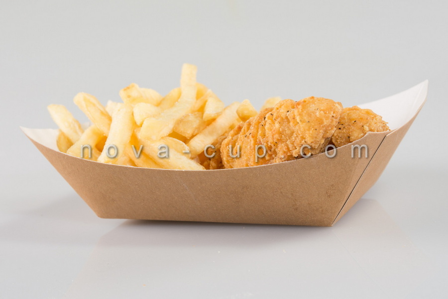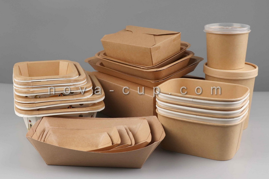 ظروف یکبار مصرف کاغذی با محیط زیست سازگارتر است با این حال کاغذ بدون پوشش می تواند روغن و آب را به خود جذب کند و در تحت وزن غذای سنگین فرو بپاشد. ظروف یکبار مصرف هم در رنگ ها و طرح های مختلف در دسترس هستند و حتی امکان چاپ دلخواه بر روی آن ها وجود دارد.
