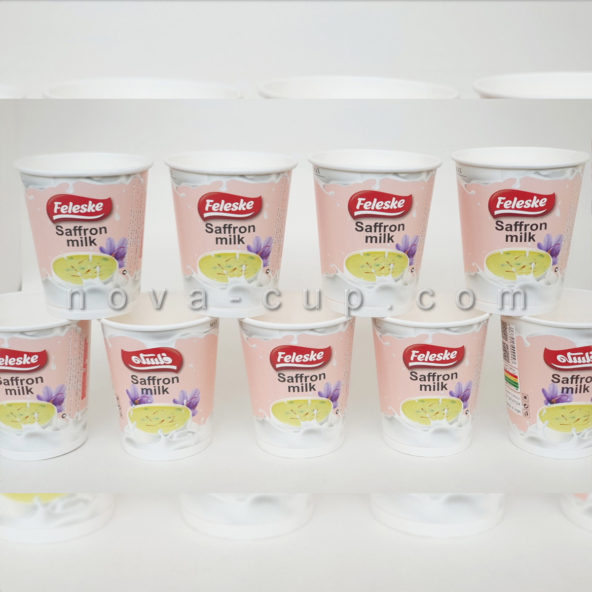 تولید لیوان کاغذی مقاوم در برابر حرارت با طرح شیر زعفران برای برند فلسکه